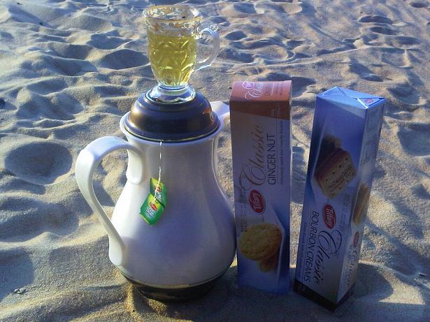 في البر شاي اخضر مع بسكويت المفضل