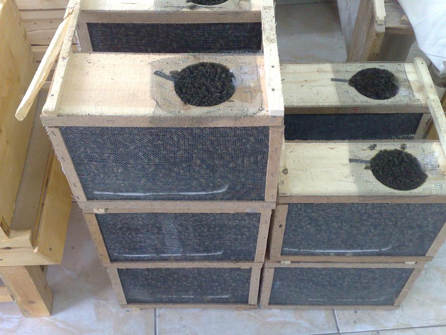 أصلا هذي طرود يعني لتجديد خلايا ميته سابقا يعني كل طرد من هذولي يكون معاه ملكة محجوزة بصندوق ونفتح الطرد ونضعه بالصندوق الاساسي ونقوم بتعليق الملكة داخل الصندوق الاساسي بين الإطارات. http://jarood.net/uploads/images/jarood-c51f1714ec.jpg وهذا شكل الصندوق الأساسي طبعا مو من تصويري. جلبته لكم من موقع آخر للإيضاح. نحجر الملكة لمدة مايقارب اربع وعشرين ساعة وبعدين نطلقها داخل نفس الاطارات لتستقر. وسبب شرائي لمثل هذه الطرود هو إما موت بعض الملكات أو حدوث نزاعات داخل الخلايا بين ملكات فتقوم كل ملكة بسحب سرب خارج المملكة( الصندوق), وبناء مملكة ثانية مستقله لكل ملكة وأتباعها. على فروع الاشجار أو بالمكان المناسب. أما العسل فيكون على الإطارات الداخليه وهذا شكل الإطارات داخل الصندوق http://jarood.net/uploads/images/jarood-e7427ee7b1.jpg . وهذا شكل داخلي للإقراص او الاطارات ويظهر فيه شيء من العسل http://jarood.net/uploads/images/jarood-035535f9eb.jpg . . وهذا القرص تشوفين فيه بشكل أوضح العسل واللي بالوسط هذا بيض ويسمى الحظنة ونوعية هذا البيض يسمى العاملات وهو أهم بيض عندنا بالخلية ومن نفس نوعية هذا البيض نستدل ان الملكة سليمة وبصحة جيدة. لأن مافيه شي بالخليه يبيض إلا الملكة . وهذي صورة أخرى. http://jarood.net/uploads/images/jarood-08259c920b.jpg |